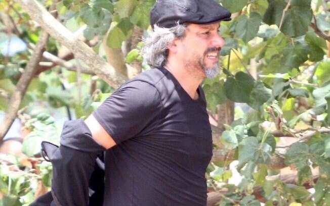 Alexandre Nero passou o penúltimo dia do ano gravando cenas de "Império" debaixo de um sol quente no Rio de Janeiro