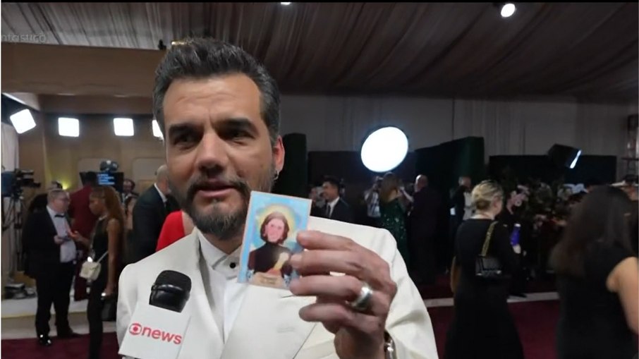 Wagner Moura levou um “santinho” com imagem de Fernanda Torres ao Globo de Ouro 2026, neste domingo (11), durante a cerimônia realizada no Beverly Hilton Hotel, em Los Angeles, nos Estados Unidos, como uma forma de dar sorte na noite em que o filme brasileiro “O Agente Secreto” concorre na premiação internacional.