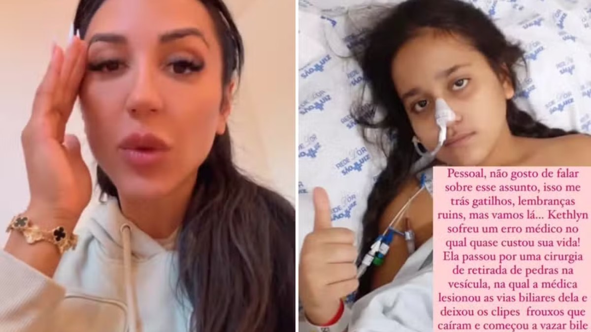 Segundo Dayanne, o quadro atual tem relação com uma complicação anterior. Em relato comovente, ela lembrou que a filha passou por uma cirurgia de retirada de pedras na vesícula e sofreu um erro médico. “A médica lesionou as vias biliares e deixou os clipes frouxos, que caíram, e começou a vazar bile dentro dela.”
