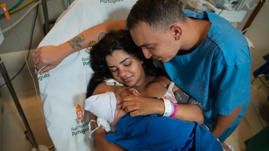 Com 40 semanas, a bolsa rompeu. “ Fui fazer xixi de madrugada e parecia um xixi infinito ”, disse. Naquele momento, João Gomes cancelou um show para acompanhá-la no hospital. Foi então que descobriram que o nó da cerclagem estava dificultando o trabalho de parto.